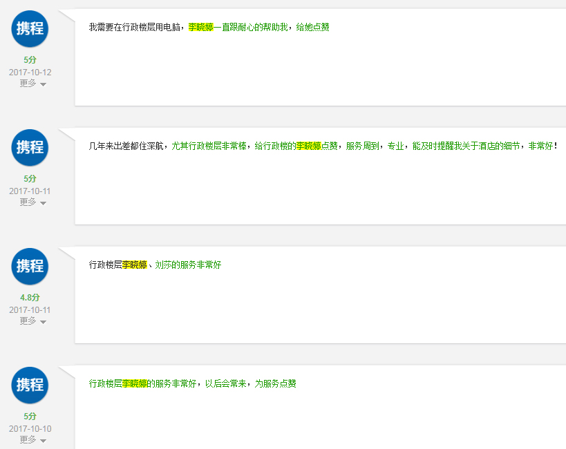 客人的点名表扬与称赞绝非偶然,就像涓涓小溪的汇入才铸就了辽阔无际的大海。任何时候的光彩亮丽,也一定是伴随着背后不懈的努力与坚持!让我们共同努力,缔造酒店更好明天!