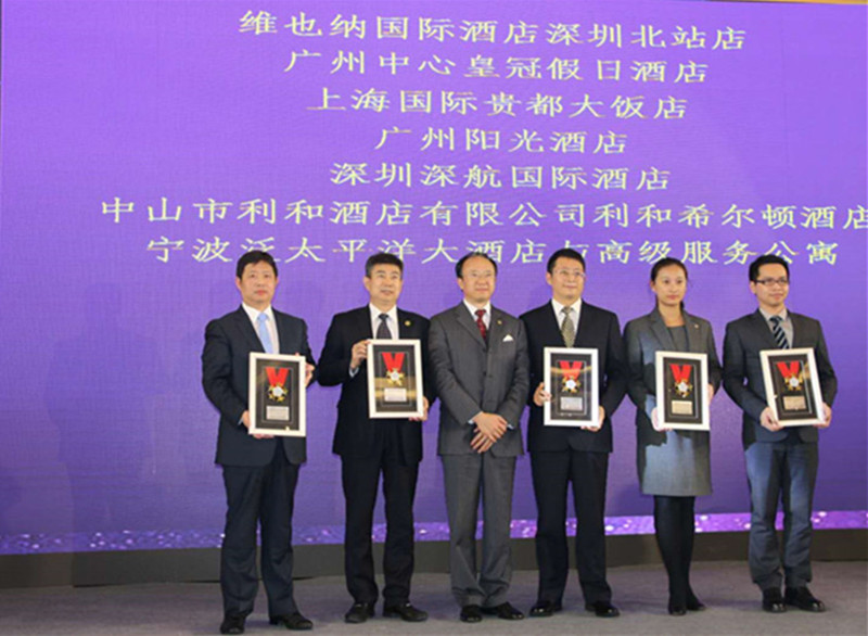 常务副总经理魏文斌先生(左一)代表酒店上台领奖
