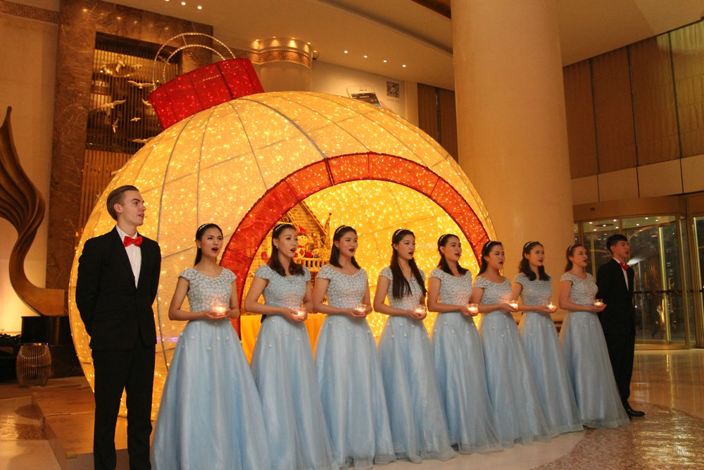 2017年12月24日,深圳深航国际酒店外围的圣诞灯饰和墙体LED巨幕节日的滚动画面格外璀璨夺目,大堂里的主题圣诞景区、咖啡厅精致的姜饼屋和机器人展台前都聚集了一批又一批拍照留影的客人,伴随着酒店中外天使们的圣诗颂唱,酒店内外营造出一种如梦如幻的奇妙感觉和节日氛围,使当天前来酒店消费的中外宾客留下了难忘的回忆和完全不同的体验。这一夜,所有人纷纷抛开了短暂的忙碌,置身于无与伦比的庆祝派对当中,丰盛的波士顿火鸡平安夜大餐、丰厚的健康主题系列奖品、丰富的圣诞平安夜演艺节目将整个活动一次又一次推各高潮,在男女老少们的欢声笑语中酒店的圣诞新年系列策划活动拉开了序幕。