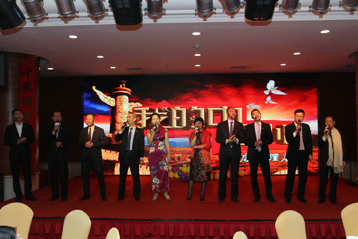 酒店管理层团队表演欢乐歌曲《我的中国心》