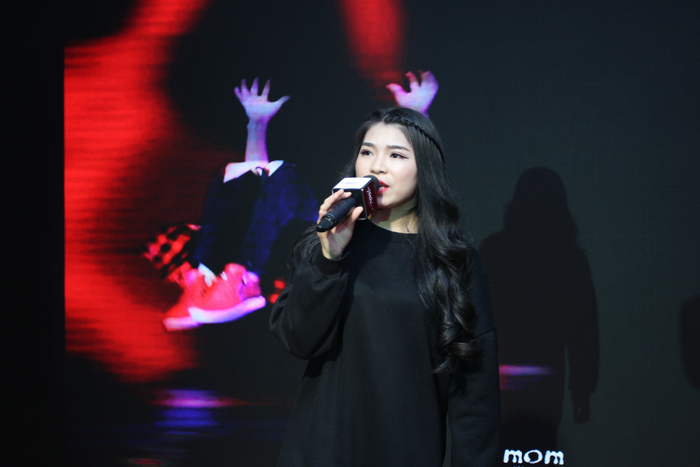 财务部张佳丽(左)及行政部袁忠总监(右)共同演唱《奔跑》