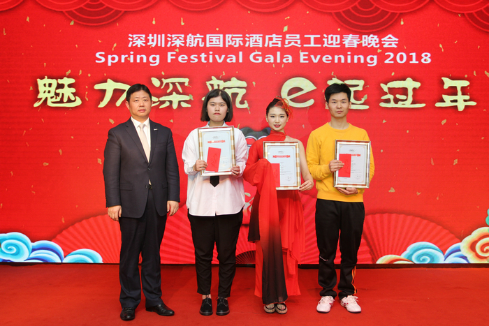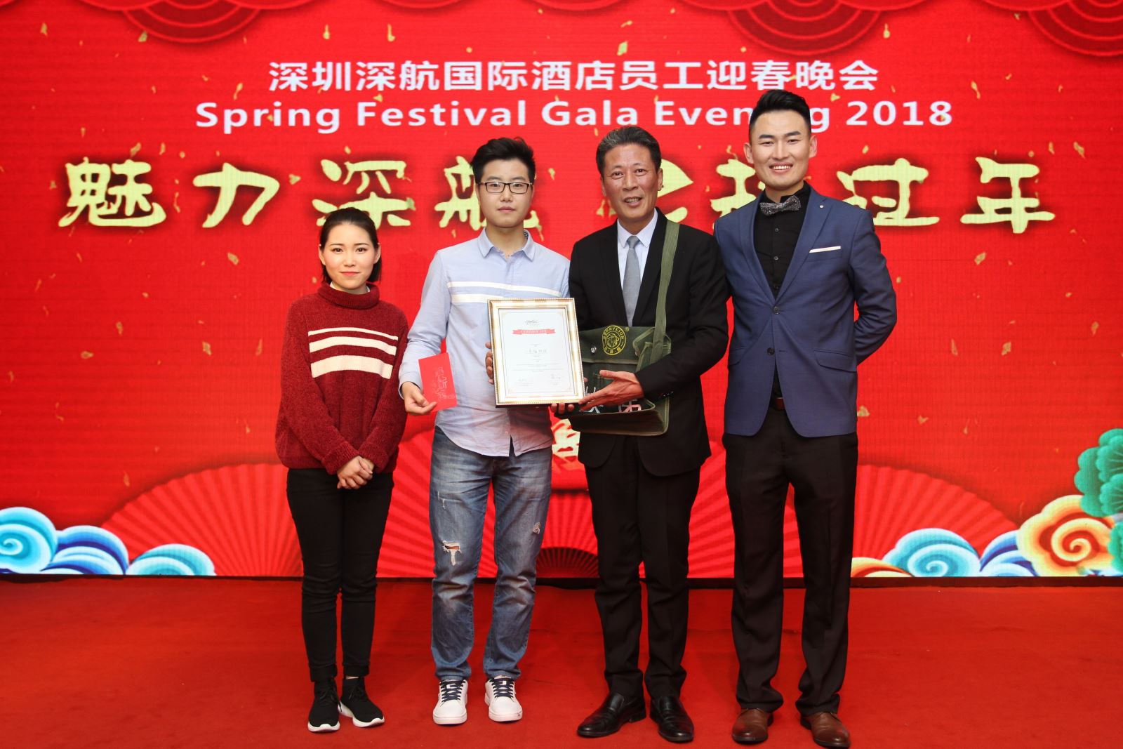 深圳深航国际酒店总经理黄俭先生(右二)为节目第一名同事颁发奖项