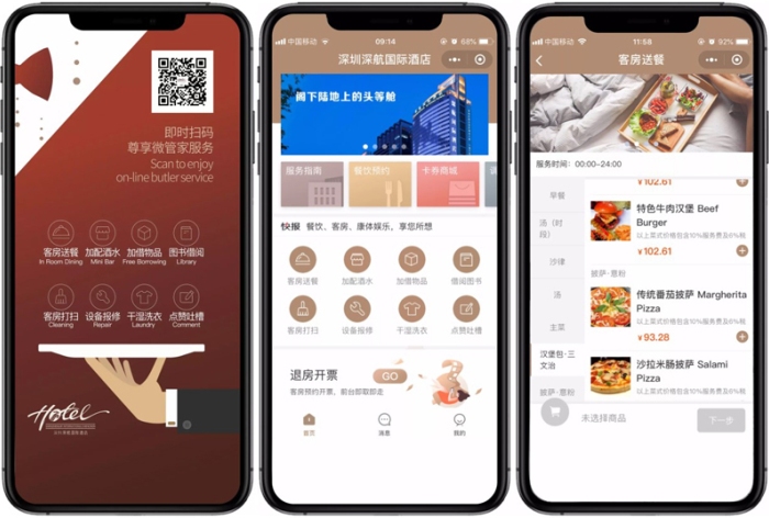 为了更好地提升住店宾客的体验,在互联网的助力之下,酒店在2018年11月份升级上线了一套“微管家”服务系统,住店宾客只需使用微信扫描房内专属二维码,即可实现足不出房,在移动端快速享受酒店微管家全方位的专属服务:客房送餐、加配酒水、餐饮预约、加借物品、借阅图书、客房打扫、设备报修、干湿洗衣、点赞吐槽等等便捷化服务。同时推荐“退房开票”服务,可提前输入相关的发票信息,即可在退房时享受更加快捷的退房服务。深圳深航国际酒店作为深圳本地老牌五星级酒店,一直在智慧、智能化系统方面进行了积极的尝试与努力。不断颠覆传统服务方式的创新性工具,为酒店行业注入新活力,打造住宿服务新标杆,引领住中体验新风尚。