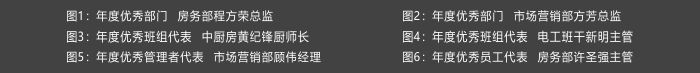 最后,黄总对新一年的工作做了高屋建瓴的展望:与全体干职员工分享了《曾国藩传》中的“神、勇、怨、傲”四个重要理念:第一、聚精会神于本职工作,专注于有价值的创造;第二、勇于探索,敢于否定和打破自己;第三、不要抱怨现在的时代、平台、同事;第四,不要固步自封,不知天高地厚从而迷惑自己。最后鼓舞大家:2019年注定是不平凡的一年,希望酒店全体干职员工能够保持初心,奋勇向前,不怨不傲,在平凡的岗位上做出不平凡的成绩!