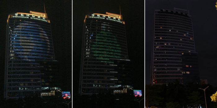 酒店户外楼体灯光前期宣传及与熄灯后的对比