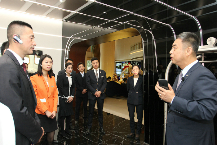 当天上午,肖强副总经理带领深圳桔钓沙莱华度假酒店的管理团队一行参观了酒店,从1楼大堂至顶层30楼总共历时1个多小时,通过前后台现场讲解使来宾们更加真切地感受到深圳深航国际酒店别具一格的航空文化主题、差异化的服务创新细节以及网络信息技术的大胆探索与应用。