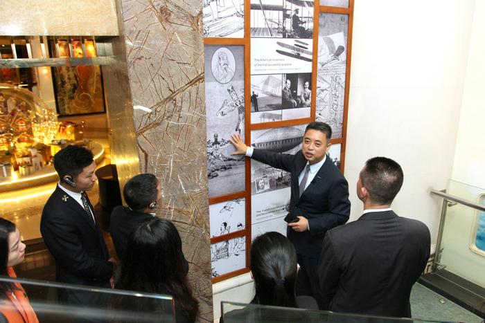 来宾们在酒店航空文化历史长廊进行参观