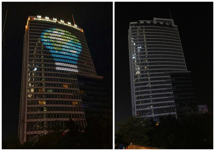 外墙楼体熄灯前及熄灯后对比鲜明