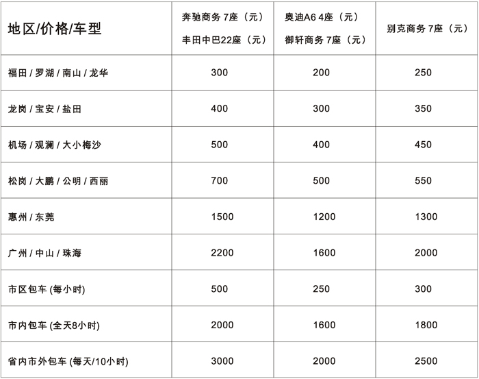 - 以上价格已包含路桥费及停车费,需另加6%增值税。