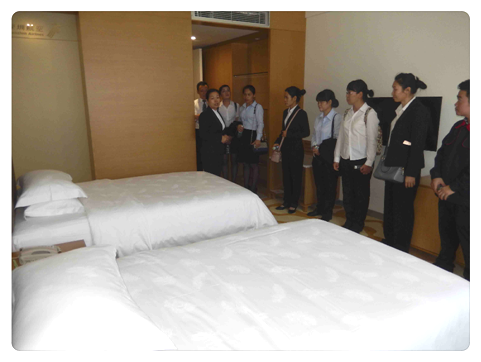 客房部吴主管引领南宁同事下参观了客房、工作车和工作间,并对每一处都做了详细的介绍。