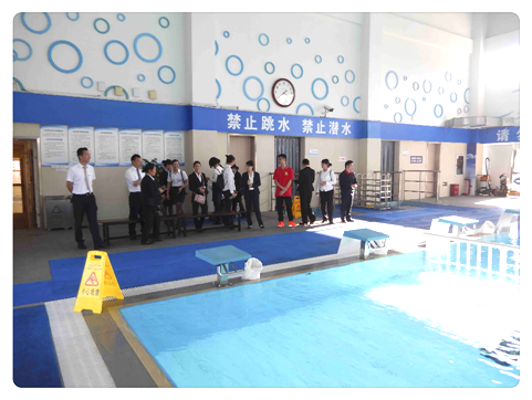 一行人来到了员工活动中心,这次我们派出了文体的资深服务员做讲解,按照羽毛球场到泳池-乒乓球室-健身房-桌球室-瑜伽馆的顺序一一进行了介绍。