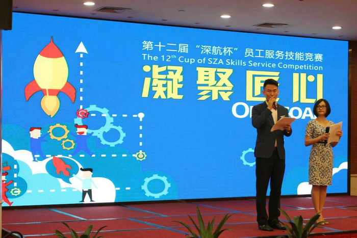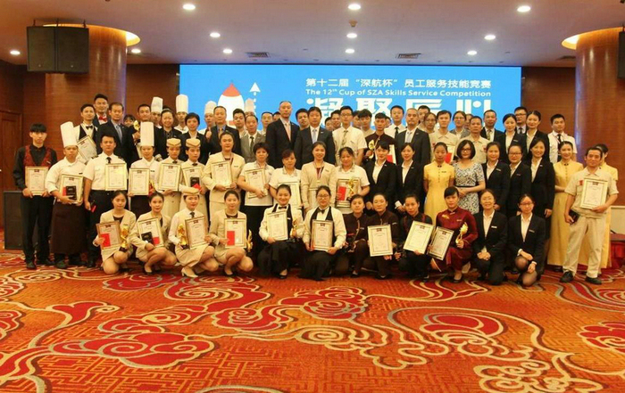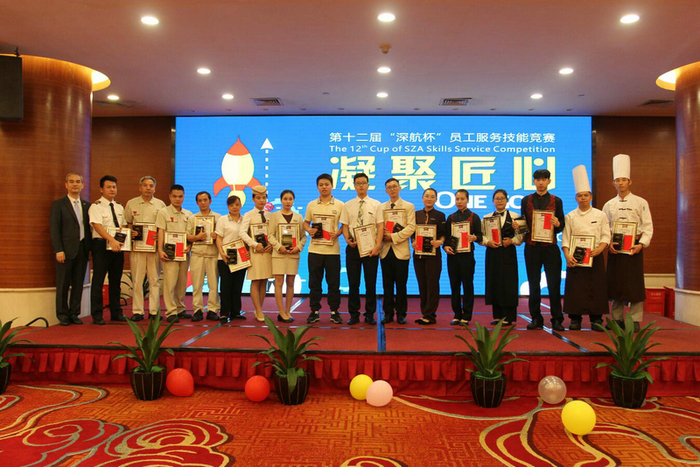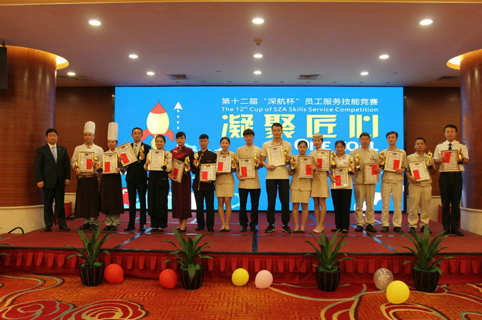 第十二届“深航杯”员工服务技能竞赛以“凝聚匠心”为主题,希望大家能够在工作岗位中挑战自我,不断创新,提升自身服务与工作技能。此次技能竞赛包括中、西式创意美食、中、西式宴会主题摆台、灭火器百米灭火、星三角启动、入住退房办理、接机预定及客房服务等共计17个赛项。