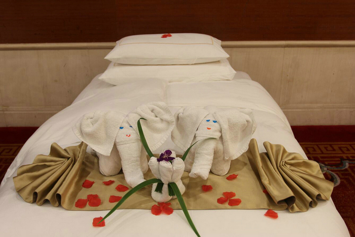 中式铺床夜床摆设