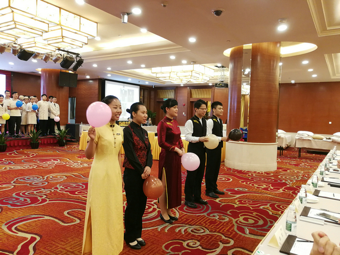 餐饮部&房务部的选手以魅力十足的出场秀获得现场评委及观众热烈的欢迎