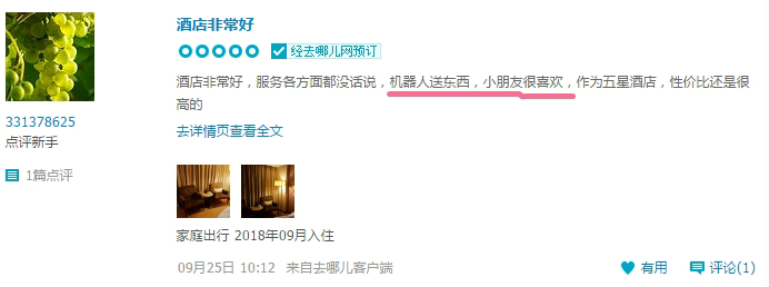 “鹏鹏”在9月的服务过程中获得了宾客的很多点名表扬,不少顾客还将“鹏鹏”的萌照进行了分享,看来大小宾客们对“鹏鹏”的服务还是相当满意滴。