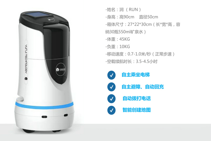 “鹏鹏”原型是云迹科技公司旗下一款智能酒店服务机器人,名字叫做“润(RUN)”。它的主要功能包括对宾客进行信息宣传、多楼层的房间送物、引领带路等。在深圳深航国际酒店,我们都亲切地喊它为“鹏鹏”,是我们勤劳贴心的员工之一。