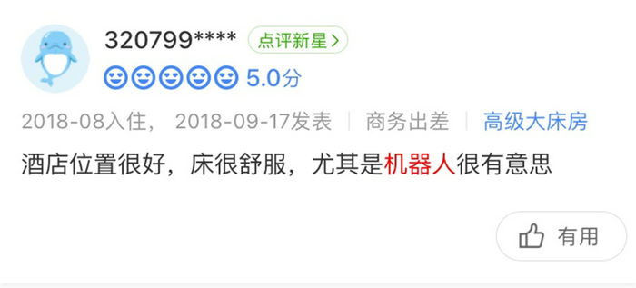 机器人“鹏鹏”在9月份,凭借网络平台上宾客的11次提名表扬,PK掉了酒店其他员工,光荣地成为月度服务明星人气王。