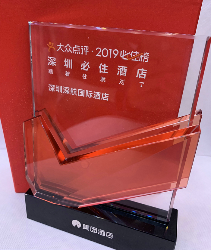 近日,在深圳市饭店业协会主办的“湾区时代•同心逐梦”2019深圳市饭店业麒麟论坛暨第三届“琅琊榜”颁奖盛典上,深圳深航国际酒店荣膺美团酒店•大众点评2019必住榜“深圳必住酒店”称号,并荣膺深圳市饭店业协会“15周年携手同行”殊荣。