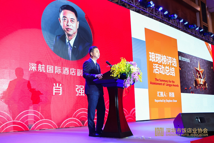 在随后的琅琊榜评选活动总结汇报上,深航酒店管理有限公司副总经理、深圳深航国际酒店副总经理肖强从琅琊榜评选回顾、同行亮点、不足之处、未来展望四个方面进行了细致分析。据悉,“琅琊榜”是深圳市饭店业协会自2015年开始发起的业内重量级榜单评选活动,评选历时数月,由评审委员会从大众投票、网络口碑、政府信用评价以及专家现场打分等多个维度进行综合评价,选出各项大奖的年度最佳。今年总共有52家国内外品牌的连锁和单体酒店参与9个类别的奖项角逐。正如肖强副总经理所言:此次评选组织实施工作更加高效严谨科学,规模和热度创下历史新高,参评的酒店数量和质量、参与积极性及重视程度较往届有明显提升,说明了酒店本身对质量品牌和大众口碑的追求在不断提高,举办「琅琊榜」评选意义深远。