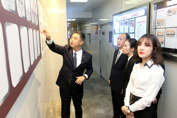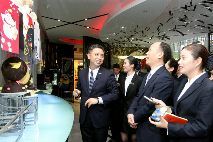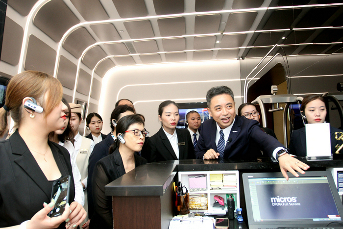 当天下午, 深航酒店管理公司副总经理、深圳深航国际酒店副总经理肖强带领柳州深航鹏逸酒店管理团队一行14人参观了酒店,从1楼大堂至顶层30楼总共历时近2个小时,通过前后台现场讲解使来宾们更加真切地感受到深圳深航国际酒店别具一格的航空文化主题、差异化的服务创新细节以及网络信息技术的大胆探索与应用。
