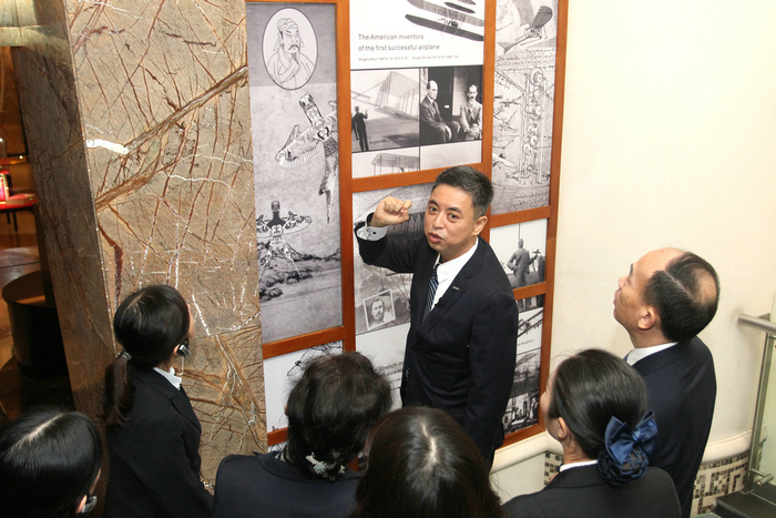 来宾们在酒店航空文化历史长廊进行参观