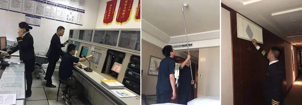 一、悬挂消防宣传横幅。面向酒店全体员工、宾客以及社会公众进行宣传,营造消防安全宣传氛围。