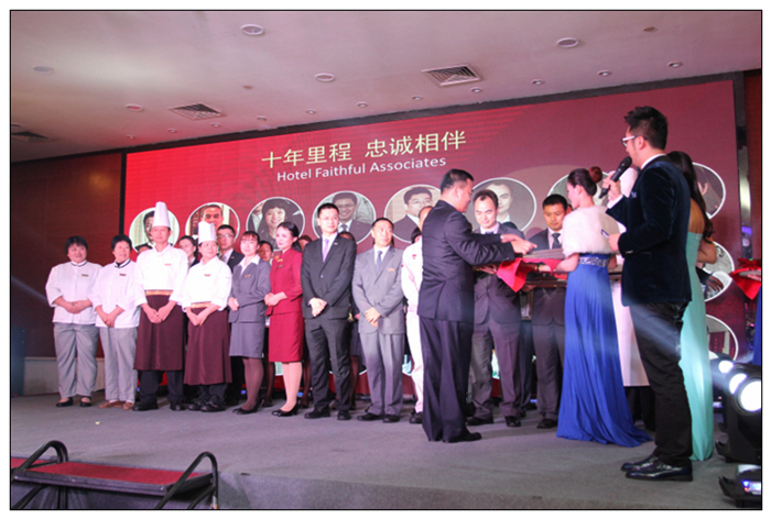 伴随着酒店合唱团的一曲《相亲相爱一家人》,晚宴圆满落下帷幕,现场洋溢着一片片感动与欢声笑语,10周年答谢庆典晚宴的成功举办,既是对过去10年的完美总结,也意味着深圳深航国际酒店即将迈入又一个更加灿烂辉煌的10年。十年里程,感恩有您,新十年,我们再出发!(深圳深航国际酒店刘燕娟)