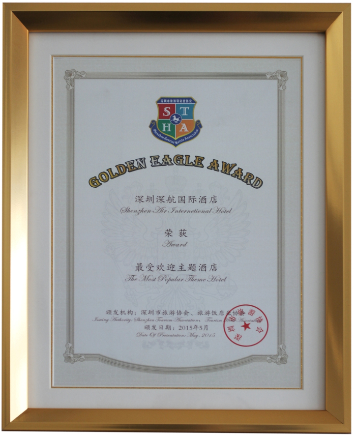 颁奖盛典上,深圳深航国际酒店凭借鲜明的航空文化主题特色及良好的客户口碑,一举斩获深圳第二届金鹏奖“最受欢迎主题酒店”称号。