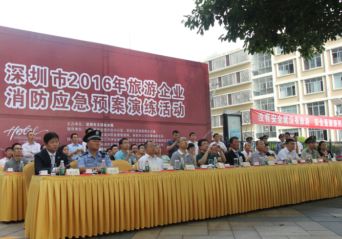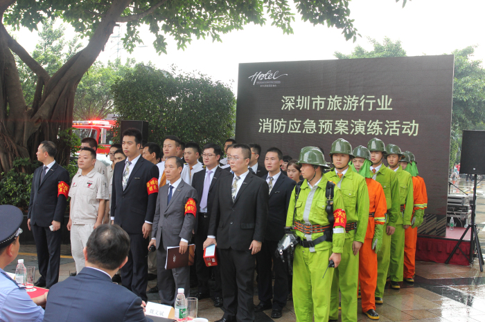 此次演练活动,酒店总经理室领导高度重视,专门召开会议对消防演习工作进行部署,并得到了深圳市文体旅游局的大力支持,同时还专门邀请了深圳市安委办、市公安武警消防支队福田区大队、各区(新区)旅游主管部门、武警竹子林消防中队、福田区沙头街道安委办、天安派出所以及深圳市旅游协会和部分星级酒店代表到演习现场进行观摩交流活动。
