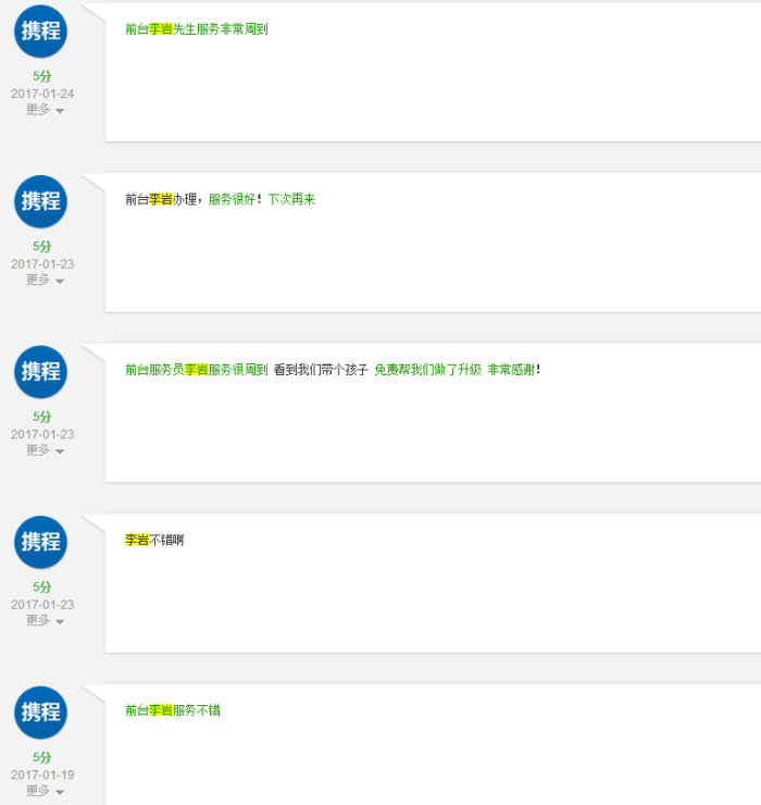 来自客务部的李岩,在2017年1月份,凭借着真诚体贴优质的服务,赢取了33个满分表扬。一个月获得33次5分满分表扬的背后,绝不是偶然,李岩所付出的努力,肯定不容忽视,辛勤的背后,今天也来探究一下他的工作心得。
