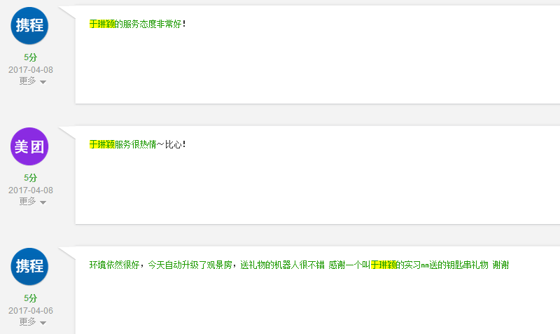 姓名:于琳颖(客务部)